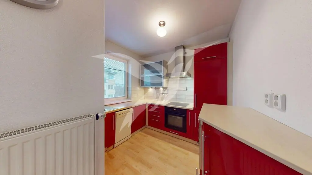 Bytová jednotka o velikosti 55 m2 se nachází ve 3. NP cihlového domu s výtahem a skládá se z předsíně, pokoje včetně kuchyňské linky s přístupem na balkon, samostatného pokoje, koupelny, toalety a k bytu náleží i sklepní kóje situovaná v suterénu bytového domu a venkovní parkovací stání přímo před vchodem do budovy. Nemovitost se pronajímá jako částečně zařízená a její součásti je kuchyňská linka s vestavěnými spotřebiči (kombinovaná chladnička, vestavěna trouba + varná deska a digestoř, MW trouba, myčka nádobí), dále jídelní set, manželská postel s rošty, vestavěné šatní skříně s velkým úložným prostorem, komody + stolek. V ceně nájmu je zahrnutý i internet, který je zaveden v bytové jednotce. Vytápění a ohřev vody je zajištěn dálkovými dodávkami.