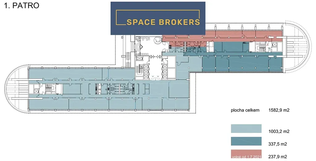 - 2. patro k dispozici jednotka o velikosti 1064m2, možnost rozdělení