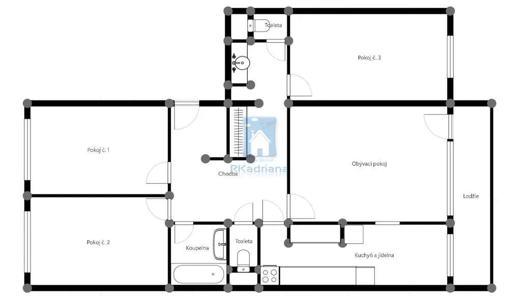 Byt je světlý a prostorný, nabízí 3 samostatné pokoje, obývací pokoj, kuchyň s jídelnou, koupelna s vanou, dvě samostatná WC.