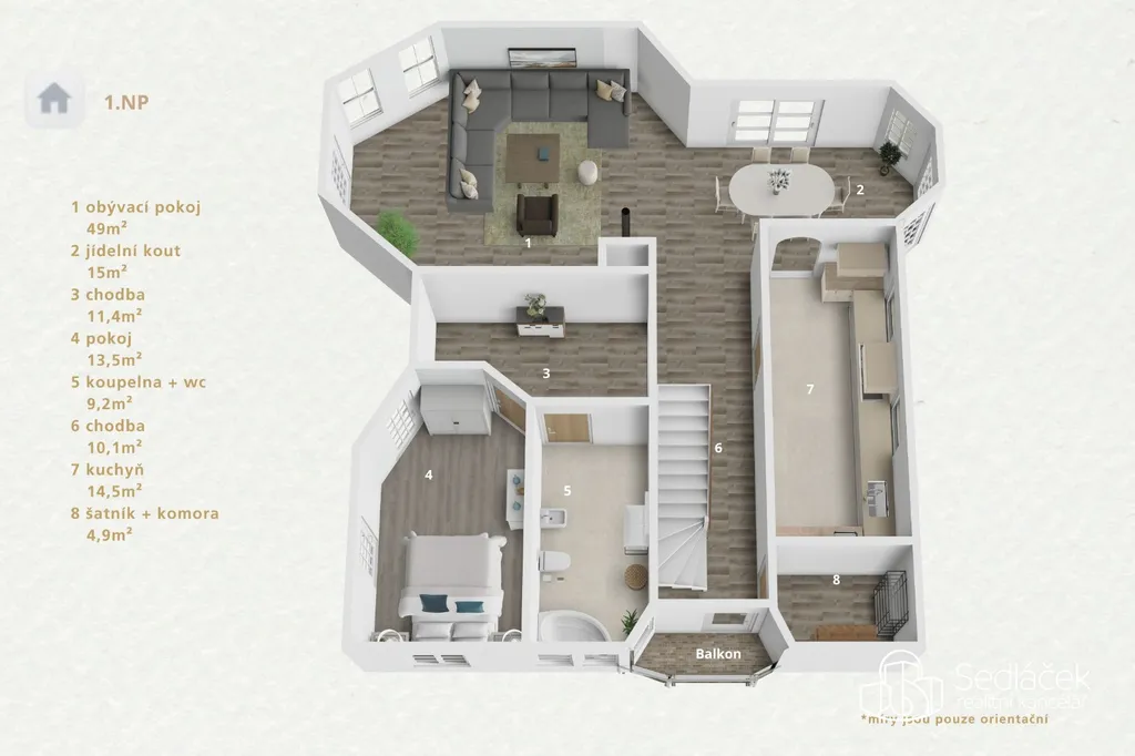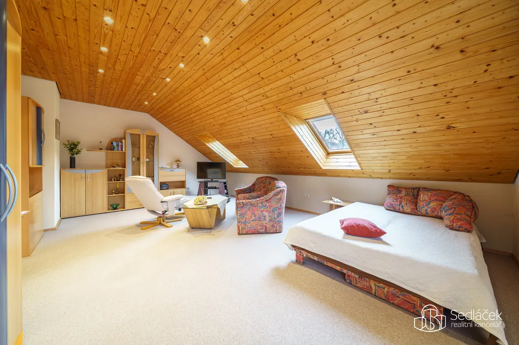 Čtyři samostatné místnosti, šatna, koupelna a lodžie. Jedna z místností nabízí možnost vybudování kuchyně, čímž lze vytvořit plnohodnotnou samostatnou bytovou jednotku – ideální pro vícegenerační bydlení, hosty nebo investiční záměr.