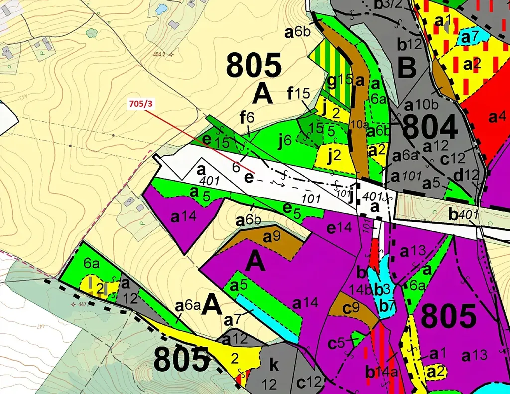 787 m2, parcelní číslo 705/3, podíl 1/1, katastrální území Janův Důl, obec Janův Důl, obec s rozšířenou působností Liberec, okres Liberec, Liberecký kraj. Po těžbě.