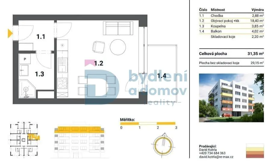 Nová nabídka bytu v novostavbě o dispozici 1+kk s výměrou 35 m, s balkónem který se nachází v Uničově na ulici Jiřího z Poděbrad.