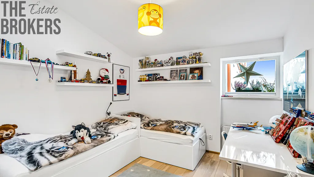 Byt se nachází ve druhém a třetím nadzemním podlaží, disponuje podlahovou plochou 79,38 m² plus balkon 8 m², což nabízí příjemné a komfortní bydlení a poskytuje možnost relaxace a trávení volného času venku. Oceníte také možnost dokoupení sklepa a garážového parkovacího stání. Standardní výbavou všech jednotek jsou vytápěné podlahy, elektrické před-okenní žaluzie, možnost využití venkovní elektro nabíjecí stanice pro automobily a společná komunitní zahrada. Možnost využití instalace smart ovládání bytu na dálku v rámci klientských změn.