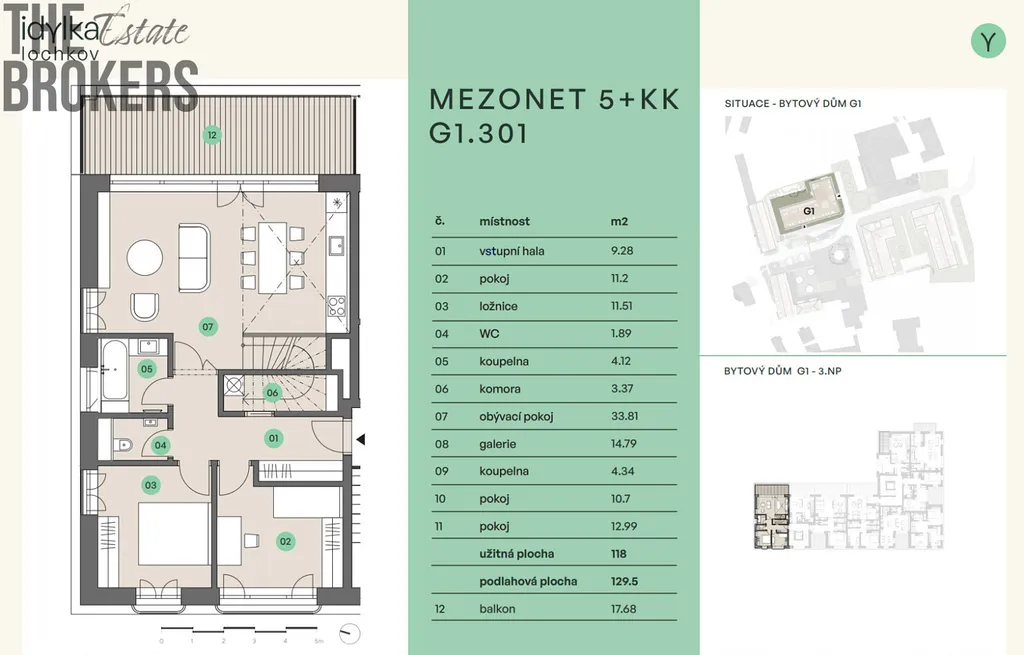 Byt se nachází ve třetím a čtvrtém nadzemním podlaží, disponuje podlahovou plochou 129,5 m² plus lodžie 17,7 m², což nabízí příjemné a komfortní bydlení a poskytuje možnost relaxace a trávení volného času venku. Oceníte také možnost dokoupení sklepa a garážového parkovacího stání. Standardní výbavou všech jednotek jsou vytápěné podlahy, elektrické před-okenní žaluzie, možnost využití venkovní elektro nabíjecí stanice pro automobily a společná komunitní zahrada. Možnost využití instalace smart ovládání bytu na dálku v rámci klientských změn.