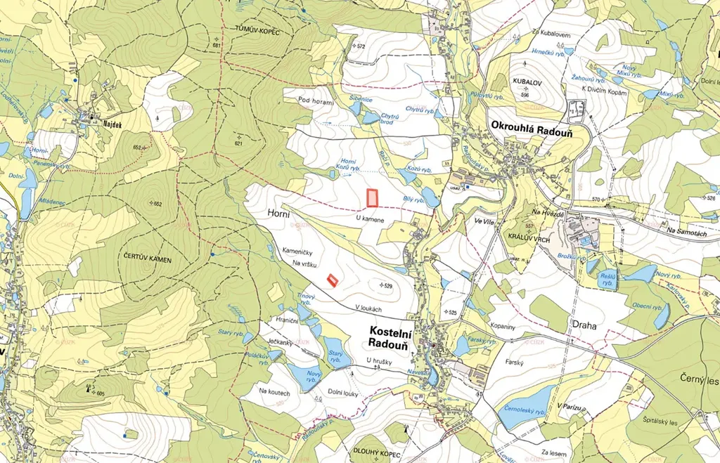 Nabízíme k prodeji zemědělské pozemky v okrese Jindřichův Hradec, v katastrálních územích Kostelní Radouň a Okrouhlá Radouň. Pozemky jsou zapsány na dvou listech vlastnictví a jsou ve 100% vlastnictví. Parcely jsou položeny v rovinatých zemědělských celcích.