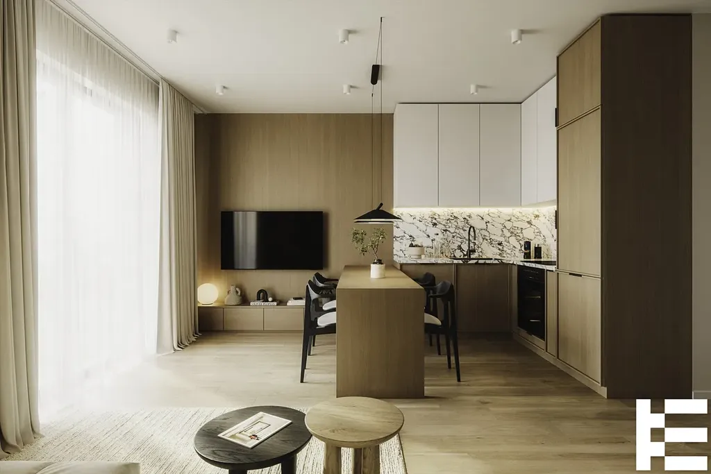 • Obývací pokoj s kuchyňským koutem – 19,35 m²