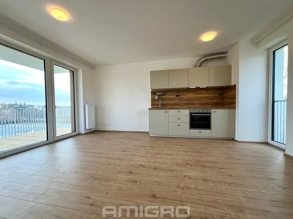 Byt je zcela nový, vybaven kuchyňskou linkou se sklokeramickou varnou deskou, elektrickou troubou, digestoří. Pronajímatel může byt dovybavit chladničkou.