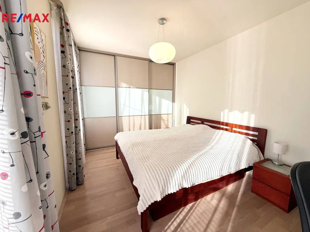 Byt je světlý a funkčně zařízený. Dispozice nabízí samostatnou kuchyň s jídelní částí, plně vybavenou vestavnými spotřebiči, se vstupem na terasu, stejně jako obývací pokoj s prostornou sedací soupravou a vestavěným nábytkem, ze kterého je na terasu rovněž přímý vstup. Terasa tak navazuje na hlavní obytné části bytu a nabízí příjemný prostor k posezení.