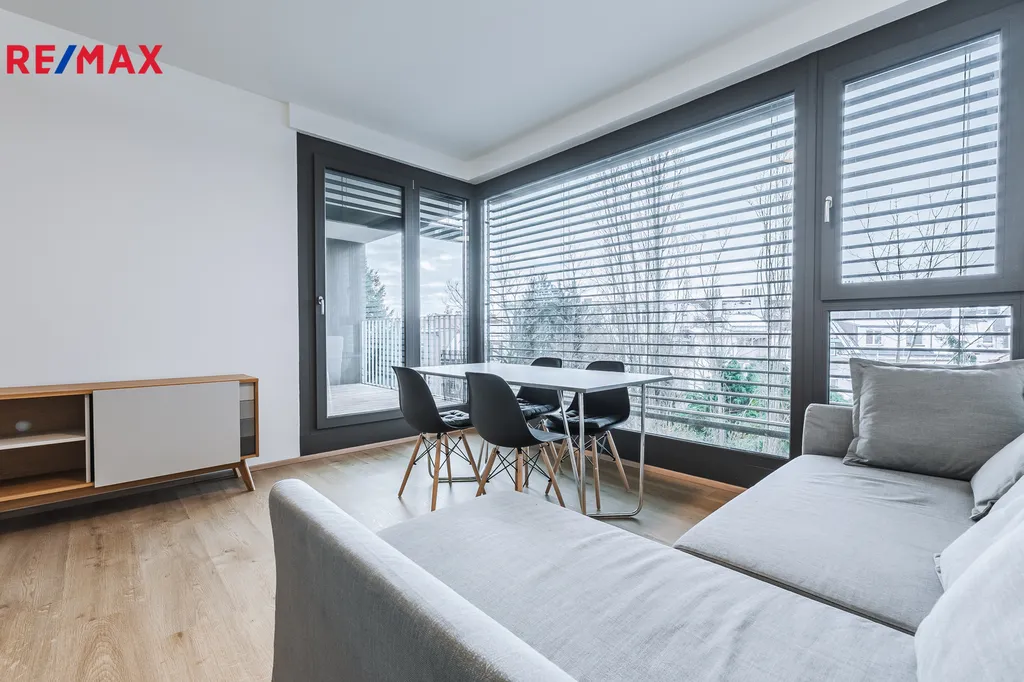 Nabízíme k pronájmu moderní a světlý byt 2+kk o ploše 53 m² se sklepem a terasou o velikosti 6 m², umístěný v rezidenčním projektu Villa Vlachovka na adrese U Vlachovky 8, Praha 8.