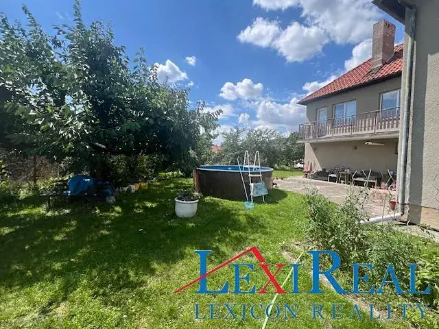 Dovolujeme si vám nabídnout k prodeji prostorný rodinný dům 6+1 o podlahové ploše 170 m2 s garáží a dalším příslušenstvím. Zahrada se vzrostlou zelení je dále vybavena zahradním domkem, bazénem a je zde i studna s vodou vhodnou na zalévání zahrady. Podle pozemku teče potok. Z přední části je dům přístupný z ulice, a je zde i vjezd do garáže. Z druhé strany je rovněž přístup na pozemek ze silnice, takže je skvělá obslužnost celé nemovitosti.