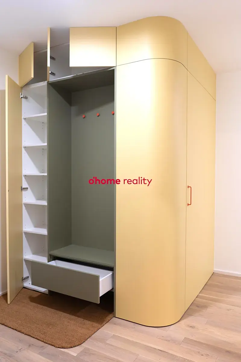 Byt je zcela nový, dosud nepoužívaný, vybavený kvalitním nábytkem na míru a moderní kuchyňskou linkou včetně nových vestavěných spotřebičů (lednice, trouba, varná deska, myčka, digestoř). Návrh celého interiéru byl realizován ve spolupráci s architektkami z ateliéru HRA - Holky rády architekturu.