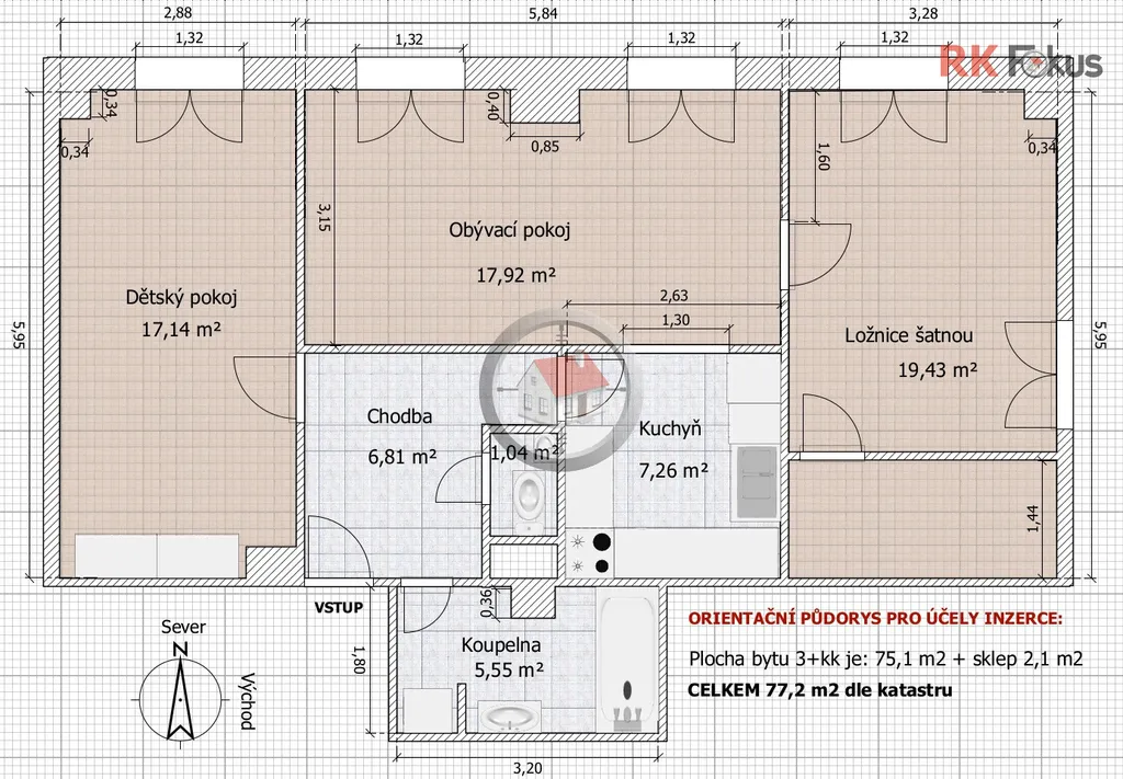 + služby 6.500 Kč + kauce 34.000 Kč, + provize RK 12.500 Kč