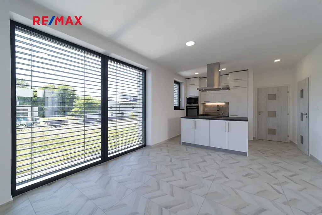 Dům ve tvaru písmene C je řešen celý jako bezbariérový s dispozičním řešením 5kk, dále disponuje atriovou terasou, vnitřním vyhřívaným bazénem, finskou saunou, parní místností, fit zónou, prostornou garáží a dvěma koupelnami. Jelikož má jeden z pokojů i vlastní sociální zázemí a přípravu pro kuchyňskou linku, může tato garsoniera sloužit nejen pro hosty, ale bude vhodná i pro starší děti a jejich partnery, nebo prarodiče, kteří ocení samostatný bezbariérový vstup do zahrady.