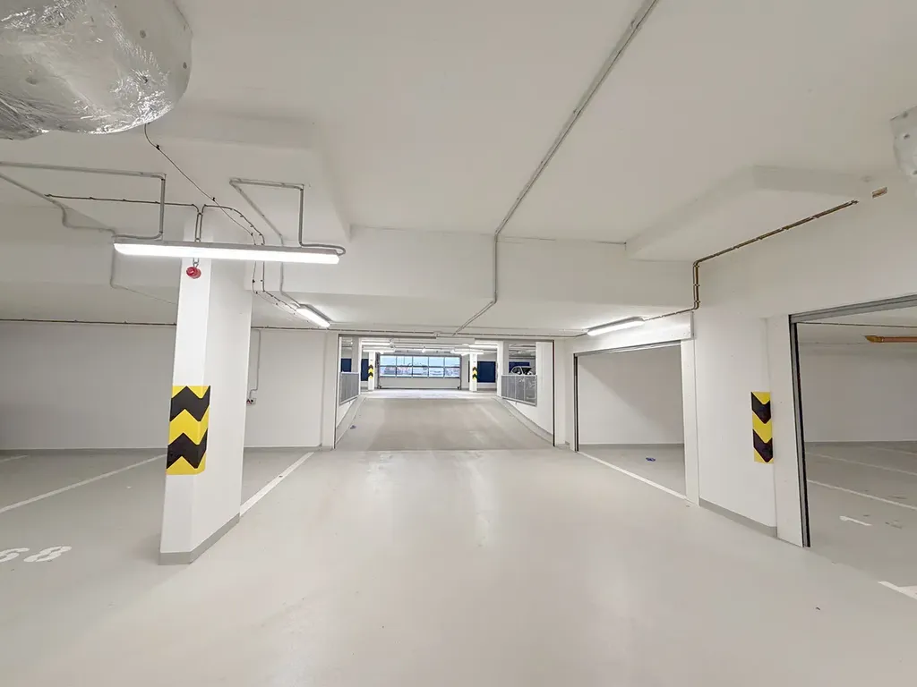 Byt se nachází ve 2. patře (3. NP) osmipodlažního domu s výtahem a součástí jeho ceny pronájmu je i garážové stání přímo v domě. K dispozici je kočárkárna/kolárna. Lokalita nabízí široké možnosti procházek či využití dobré občanské vybavenosti (Billa, Albert) a výborného spojení do centra města ze zastávky tramvaje Náměstí Olgy Scheinpflugové – č. 4, 5, a 94 přímým spojem na Václavské nám. za 27 minut nebo za 14 minut k metru B Smíchovské nádraží.