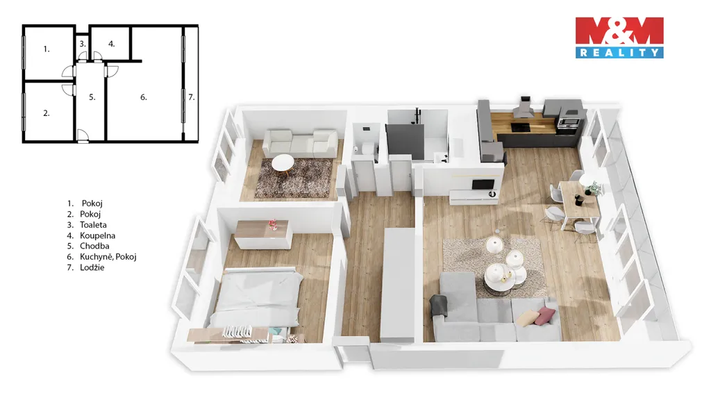Nabízíme k prodeji krásný rekonstruovaný byt 3+kk v oblíbené lokalitě Pardubic - Polabiny, ul. Družstevní. Tento světlý byt se nachází ve 2. nadzemním podlaží panelového domu a nabízí celkovou plochu včetně příslušenství 64 m². Byt prošel zdařilou rekonstrukcí, která zahrnuje změnu dispozice, zděné jádro, elektroinstalaci v mědi, snížené stropy, dveře, obložky a další. Součástí bytu je také velká zasklená lodžie o ploše 7 m² a sklepní prostor 3 m². Energetická náročnost budovy je třída C - úsporná. Vytápění a ohřev vody je řešen dálkovým rozvodem. V okolí naleznete veškerou občanskou vybavenost v pěším dosahu. Prohlídkový den se uskuteční 17.1.2026 v dopoledních hodinách. Tento byt doporučujeme jako ideální domov pro rodiny či páry hledající komfortní bydlení. Pro bližší informace či sjednání termínu prohlídky kontaktujte makléře Jan Kubíčka.