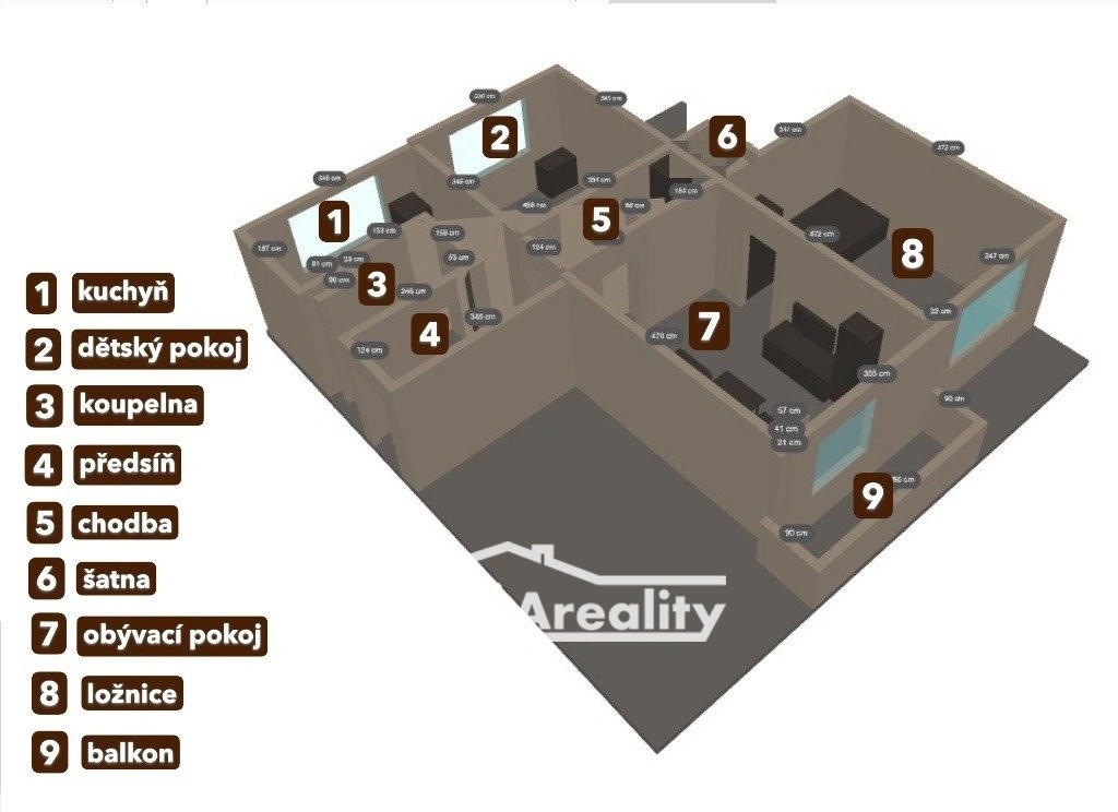Bytová jednotka o celkové ploše 67 m2 se nachází v 3. podlaží ze 6. Balkon s obývací místností a ložnicí mají jižní orientaci, dětský pokoj a kuchyň mají severní orientaci. Vstupní částí je předsíň, která navazuje na chodbu. Na konci chodby se nachází prostorná šatna. U vstupu do bytu je koupelna se sprchovým koutem a wc v moderním designovém stylu. Má zděné jádro. V kuchyni oceníte zánovní kuchyňskou linku včetně spotřebičů, přípojky na myčku i pračku. Samostatná lednice stojí vedle pultu se 2 židlemi. Abyste se ochladili v parných dnech, slouží tu ochlazovací jednotka, která mimo jiné je k dispozici i v dětském pokoji. V jižní straně bytu je obývací pokoj s balkonem průchozí do ložnice. K bytu náleží sklepní kóje.