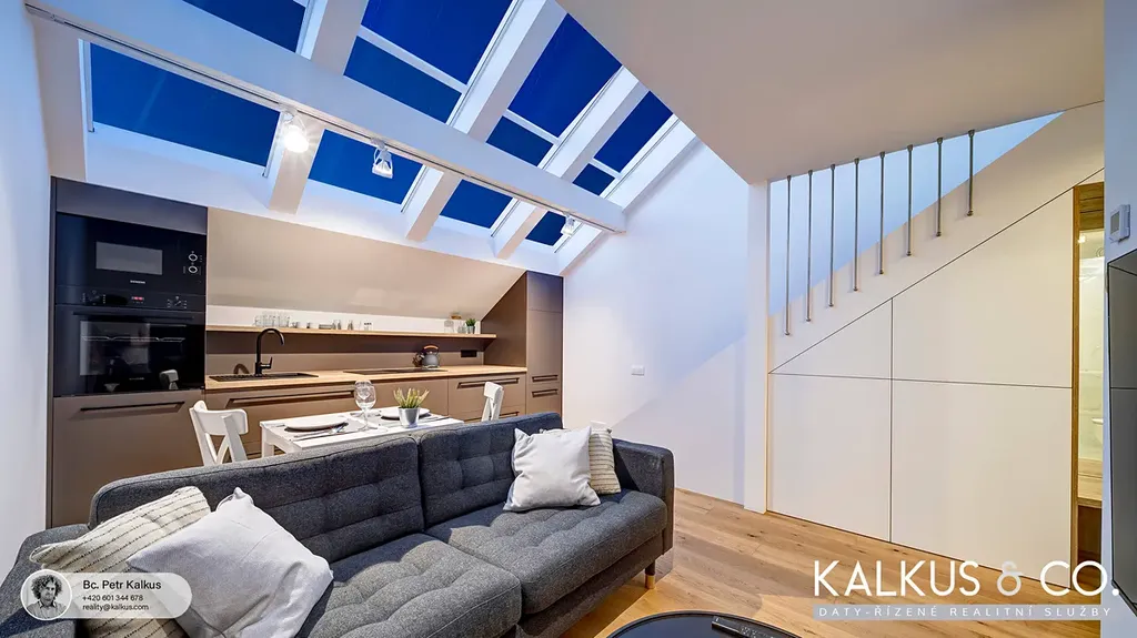 Byt právě prošel citlivou rekonstrukcí v nadstandardním provedení, které spojuje historický šarm s moderním komfortem. Velkorysé loftové stropy, otevřená galerie a světlá paleta materiálů dodávají interiéru vzdušnost, eleganci a klidnou nadčasovost.
