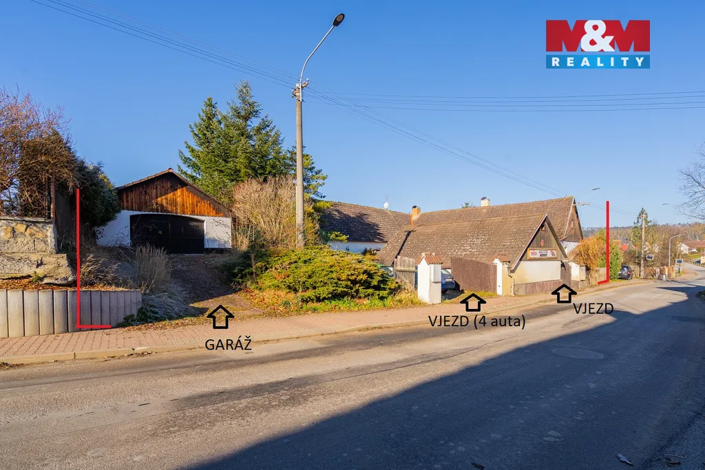 Nabízíme ke koupi prostorný dům o podlahové ploše 206 m², který je ideální pro kombinaci bydlení a podnikání. Polovina domu slouží k bydlení, druhá polovina je určena k podnikatelskému využití, přičemž je aktuálně zkolaudována jako ordinace. Nemovitost má dva hlavní vstupy, což umožňuje praktické oddělení soukromé a pracovní části, dále sociální zázemí a je částečně podsklepená. Dům je napojen na veřejný vodovod i kanalizaci. Vytápění je řešeno plynovým kotlem s radiátory, k dispozici krb v hlavní obytné místnosti. Rekonstrukce byla započata, což novým majitelům umožňuje dokončit jak obytné, tak podnikatelské prostory dle vlastních potřeb a představ. Součástí nemovitosti je samostatná garáž s přímým vjezdem z ulice, dílna (sklad), zahradní domek a parkovací plocha pro až 4 vozy. Zahrada nabízí venkovní krb a přímý vstup do jídelny. Nachází se zde také stavební jáma o rozměrech cca 9 × 4 m po původním bazénu, kterou lze využít pro vybudování jezírka nebo nového bazénu. Nájezd na D4 6km.