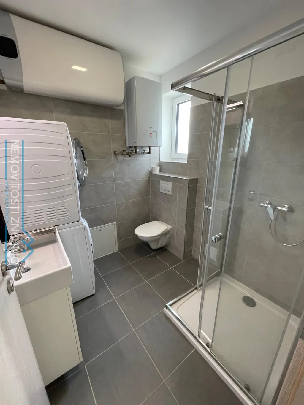 b.) koupelna se sprchovým koutem, toaletou, přípojkou na pračku a umyvadlem