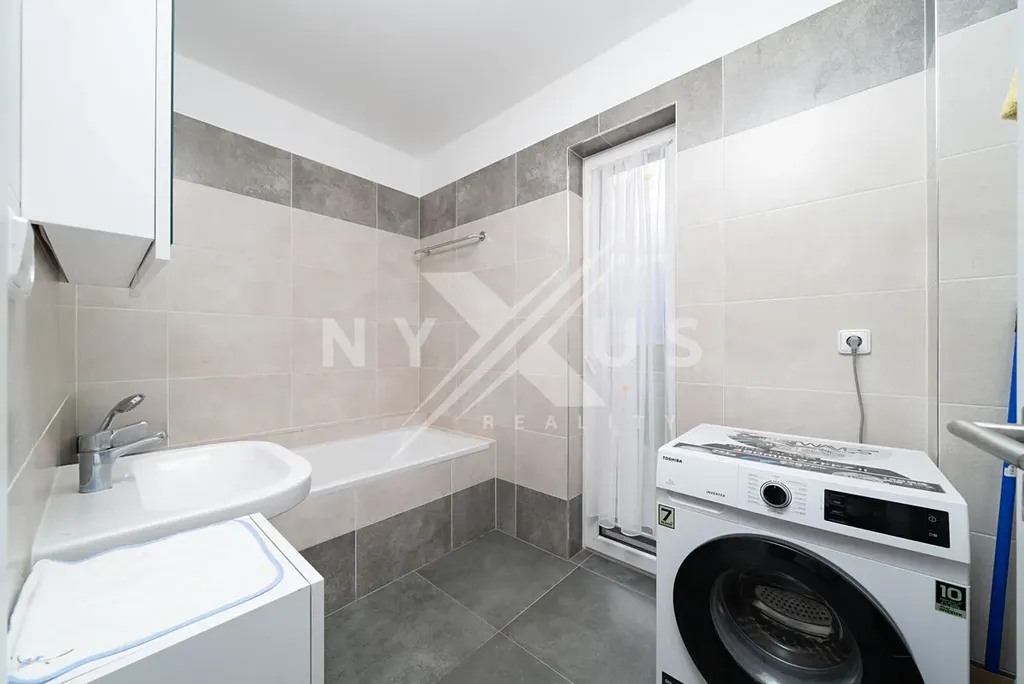 V celém bytě je plovoucí podlaha, dlažba a podlahové topení.