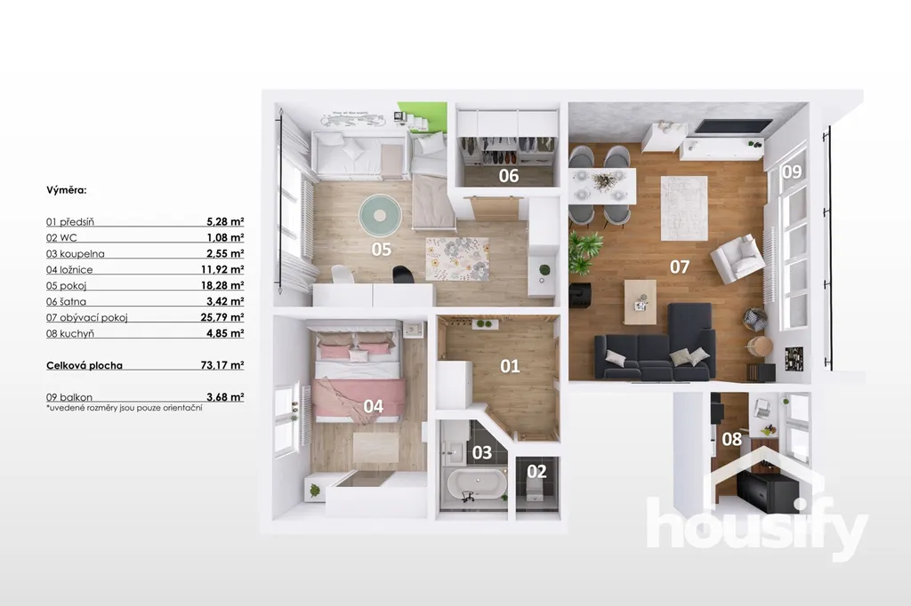 - Samostatná toaleta a koupelna
