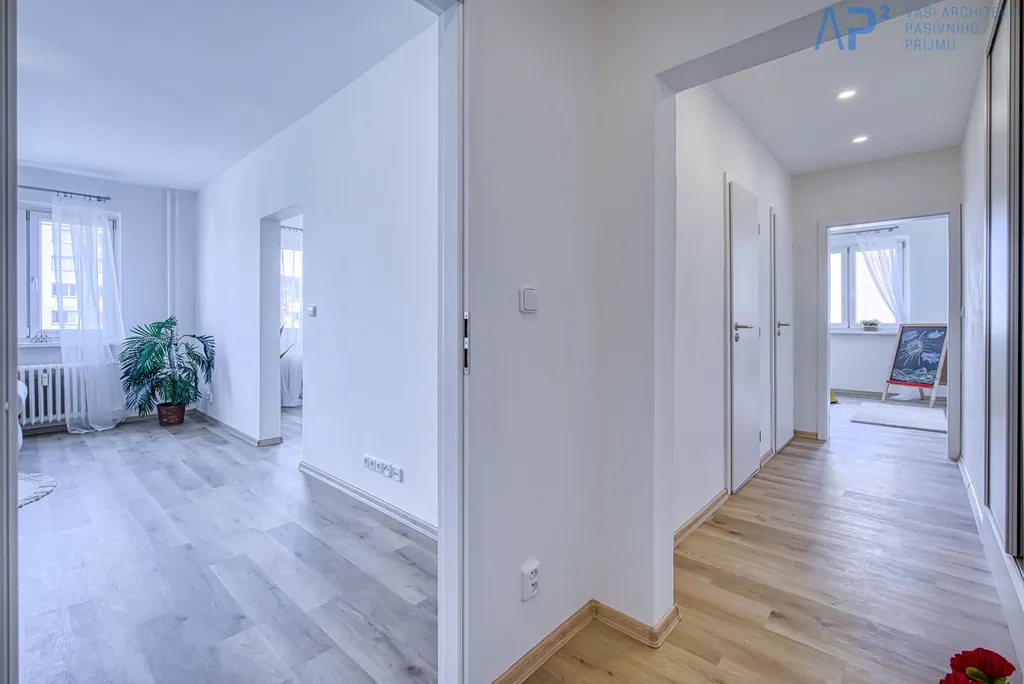 Byt je čerstvě po kompletní rekonstrukci, je světlý a prostorný a působí velmi příjemně. Disponuje třemi pokoji a kuchyní s novou kuchyňskou linkou s myčkou nádobí, indukční varnou deskou, elektrickou pečící troubou a digestoří. V koupelně se nachází sprchový kout, umyvadlo se skříňkou a zrcadlová skříňka s osvětlením. WC je samostatné. Součástí pronájmu je také sklepní kóje o velikosti cca 1 m². Byt bude pronajímán bez nábytku a dekorací.