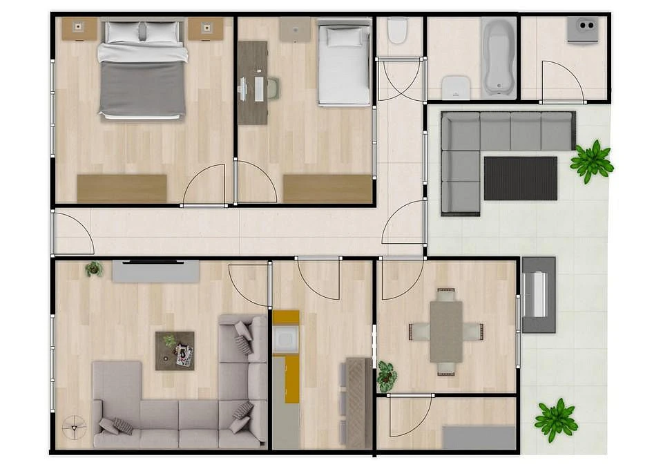 Vstupními dveřmi vejdeme do prostorné chodby o celkové ploše cca 14,2 m², která propojuje hlavní obytné části domu. Po levé straně se nachází pokoj o výměře cca 16,42 m², který může sloužit jako obývací pokoj či ložnice. Z tohoto pokoje je vstup do další místnosti o ploše cca 10,11 m², vhodné jako ložnice, dětský pokoj, šatna nebo pracovna. Z již zmíněné chodby je dále přístup do kuchyně o rozloze cca 9,64 m², kde je zároveň umístěn ohřev teplé vody. Z kuchyně vejdeme do prostorného pokoje o velikosti cca 22,47 m², který lze využít jako hlavní obývací pokoj či další ložnici. Z kuchyně je také přístup do menší místnosti o celkové ploše cca 8,03 m², jež může sloužit jako samostatná jídelna. Z této místnosti je vstup do komory o celkové ploše cca 4,34 m² a zároveň je z ní možné projít zpět do hlavní chodby, což vytváří praktické dispoziční propojení. Chodba pokračuje ke koupelně o celkové ploše cca 4,2 m² a samostatnému WC o celkové ploše cca 1,08 m². Z chodby je vstup na soukromý dvůr, odkud se vchází do jednotlivých nebytových prostor. Z dvoru je přístup na půdu nad domem o výměře cca 68,52m², která přímo vybízí k půdní nástavbě. Nachází se zde komora o rozloze cca 7,55 m², ze které vedou schody do sklepa o celkové ploše cca 5,76 m². Na dvoře jsou dále tři menší nebytové prostory o celkových plochách cca 5,13 m², 4,78 m² a 2,59 m². Ze dvora je po úpravách možné, jak je výše již uvedeno vytvořit místo pro relaxaci a odpočinek.