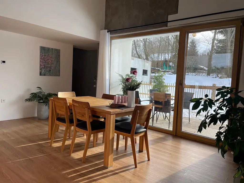 Prodej novostavby rodinného domu v srdci České Kanady. Prodám elegantní novostavbu rodinného domu o dispozici 4+kk (106 m²) s možností rozšíření na 5+kk až cca 130 m², doplněnou o rozestavěnou garáž 70 m², sklad 15 m² a zahradu. Nemovitost se nachází na konci malebné vesnice, v klidném prostředí přírodního parku Česká Kanada, v nadmořské výšce cca 640 m. Jedinečné místo s čistou přírodou, klidem a soukromím, přesto s dobrou dostupností: Jindřichův Hradec cca 15 km, Nová Bystřice / hranice s Rakouskem cca 10 km. V bezprostřední blízkosti Golfresort Monachus – hřiště Nová Bystřice a Mnich. Dům je světlý, vzdušný a velmi prostorný, a to nejen díky promyšlené dispozici, ale také díky velkoformátovým oknům a vysokému stropu do štítu v hlavním obytném prostoru. Příjemnou atmosféru podtrhují kvalitní litinová kamna Jøtul. Obývací pokoj s kuchyní a jídelnou orientovaný do zahrad. Přímý vstup na terasu přes portálové okno. Kuchyňská linka na míru od renomované firmy, včetně všech spotřebičů