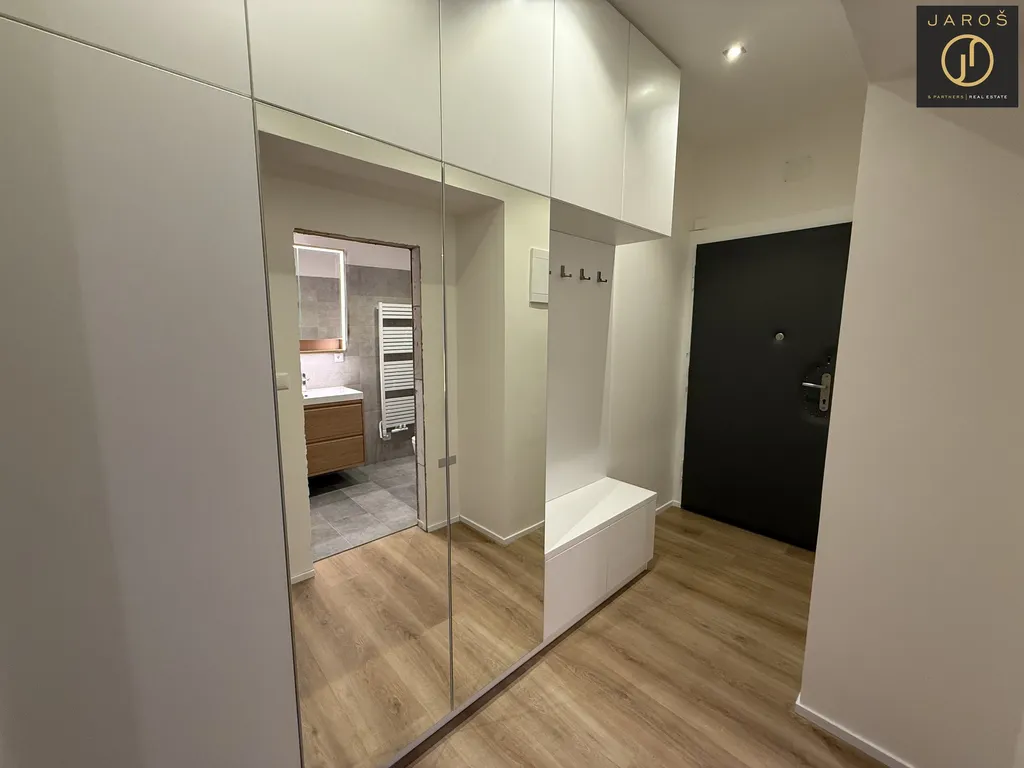 V bytě najdete novou, zcela zařízenou kuchyňkou linkou spotřebiči zn. Whirlpool, vestavné skříně v ložnici a na chodbě a policovým systémem v technické místnosti.