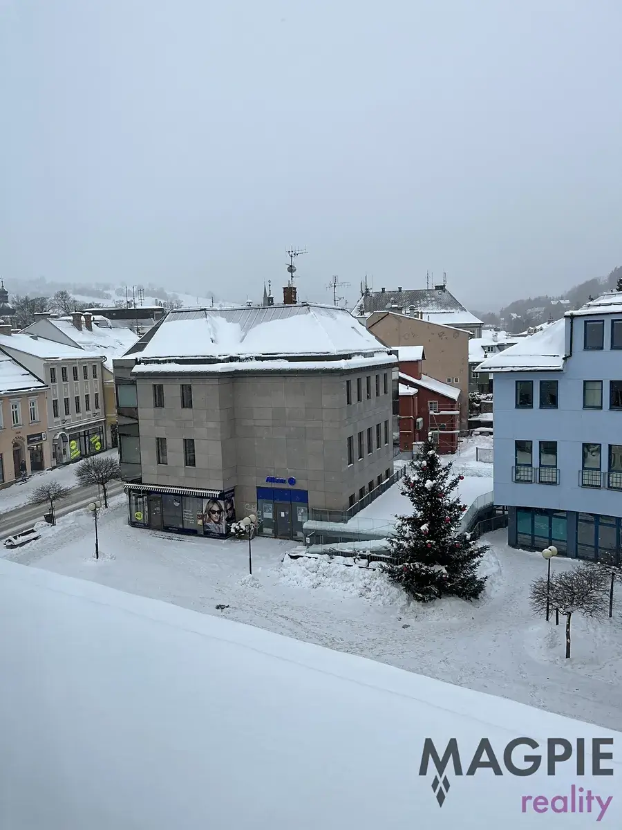 Nabízíme k dlouhodobému pronájmu moderně vybavený podkrovní byt uprostřed Vrchlabí. Dispozice bytu 2kk tvoří zádveří (5,78 m2), ze kterého vstupujete na WC (1,21 m2) a do prostorné koupelny (6,71 m2) s vanou i sprchovým koutem. Obývací pokoj (27,2m2) disponuje kompletně vybavenou kuchyní s myčkou nádobí, kombinovanou troubou s mikrovlnkou, varnou deskou a samostatnou lednicí. Ložnice (14,7 m2) pak nabídne dostatek prostoru i práci z domova nebo další úložný prostor. Okna vedou do náměstí a výhled na kopec Žalý, který doplní příjemnou atmosféru bytu.