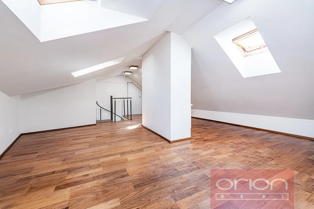 Nabízíme k pronájmu nově zařízený byt s klimatizací o velikosti 3+kk v 5. patře kompletně zrekonstruovaného secesního domu s výtahem. Byt s plochou 101 m² nabízí v nižším patře velkou vstupní chodbu, prostorný obývací pokoj spojený s kuchyní vybavenou všemi spotřebiči a krásným výhledem na okolní domy, ložnici s postelí a vestavěnými skříněmi, koupelnu se sprchou, toaletou a bidetem, samostatnou toaletu, komoru. Z chodby vede schodiště do pokoje, který lze využít jak pracovnu nebo druhou ložnici. K vybavení bytu patří dřevěné podlahy v pokojích, v ostatních místnostech dlažba, plynový kotel, velkoformátová okna, klimatizace. Dům je v oblíbené části Praha 3 - Žižkov, jen pár minut chůze od stanice metra Jiřího z Poděbrad a od parku Riegrovy sady. V místě je veškerá občanská vybavenost: obchody, restaurace, bary, bistra, v blízkosti nákupní centrum Flóra.