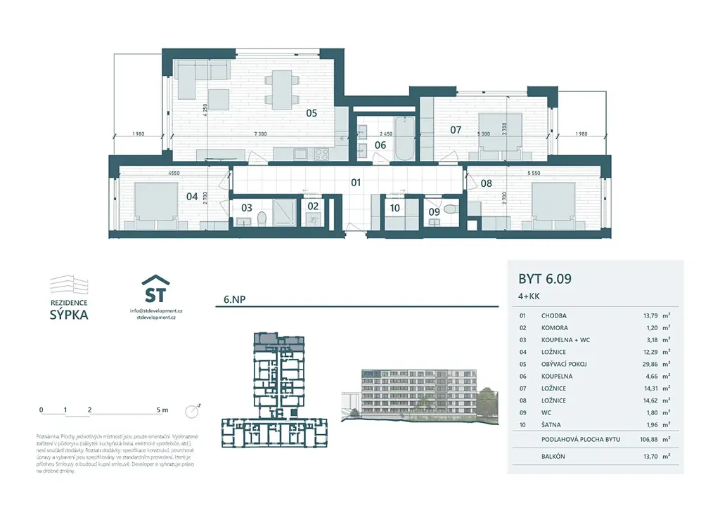 Nabízíme prostorný byt 4+kk v 6. nadzemním podlaží připravovaného nadstandardního projektu Rezidence Sýpka Otrokovice.