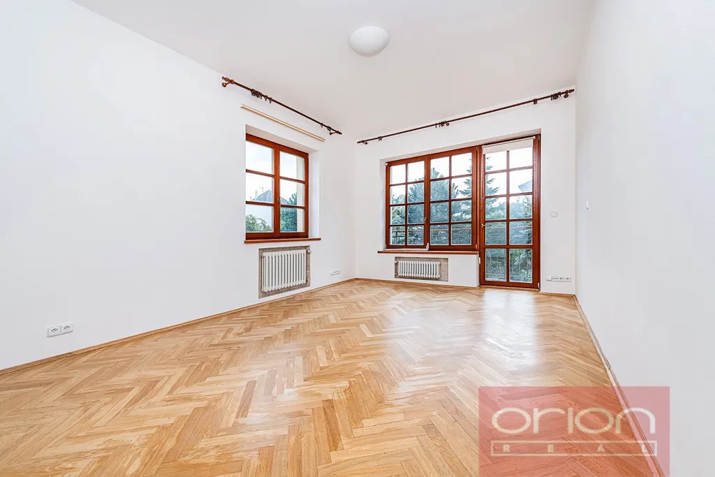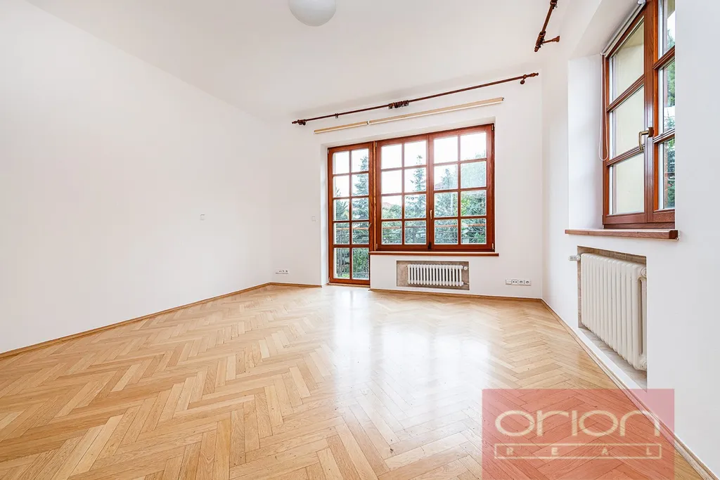 Nabízíme k pronájmu prostornou vilu se zahradou v klidné rezidenční čtvrti v Praze 6 - Břevnov. Celková plocha domu činí 316 m² a nabízí v přízemí vstupní halu, plně vybavenou kuchyň, obývací pokoj s jídelnou a se vstupem na terasu a zahradu, koupelnu se sprchou a samostatnou toaletu. V 1. patře jsou 3 ložnice, (z nichž 2 mají vstup na balkon), koupelna s rohovou vanou a sprchou a samostatná toaleta. Podkroví nabízí 2 ložnice a koupelnu s vanou a toaletou. V suterénu domu se nachází skladovací prostory, koupelna se sprchou, umyvadlem a WC, technická místnost a garáž pro dvě auta. K vybavení domu patří skříně, pračka, internet, satelit a alarm. Na podlahách jsou dřevěné parkety a dlažba. Ve spodním patře jsou venkovní elektrické rolety. K dispozici je udržovaná zahrada o velikosti 403 m². Dům je situován v klidné lokalitě v pěší dostupnosti od parku Ladronka, obory Hvězda nebo Břevnovského kláštera. Krásná lokalita se spoustou zeleně v okolí, 5 minut chůze od tramvajové zastávky s rychlým spojením na metro Hradčanská. V blízkém okolí veškerá občanská vybavenost: obchody, školy a školky, mezinárodní školy, sportoviště, restaurace a kavárny. Autem blízké napojení na městský okruh a dálniční síť.