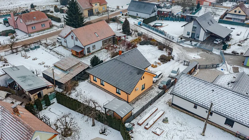 Exkluzivně nabízíme k prodeji rodinný dům 5+kk v obci Hrušová, v klidné části s výbornou dostupností do Vysokého Mýta, Chocně, Litomyšle i Ústí nad Orlicí. Moderní zděný dům, jehož stavba byla zahájena v roce 2016 a zkolaudován byl v prosinci 2017, stojí na udržovaném a oploceném pozemku o celkové výměře 891 m², z toho zastavěná plocha činí 151 m² a obytná podlahová plocha 125 m². Nabízí komfortní a funkční bydlení, které ocení každá rodina. Dům je přízemní a veškerý život se odehrává v rámci jednoho patra. Hlavním srdcem je velkorysý obývací pokoj s jídelnou a kuchyní o ploše 44,6 m², odkud je přístup do všech dalších částí domu. Dispozice je navržena prakticky: najdeme zde prostornou ložnici (16,4 m²), dva samostatné dětské pokoje (12,3 a 11,3 m²), koupelnu, dvě toalety (samostatné WC a další v koupelně) a pracovnu ( 6,90m²), technickou místnost se zázemím, šatnu, chodbu a zádveří. Dům je napojen na elektřinu, vodovod a kanalizaci. Kvalitní stavební provedení zajišťuje zděná konstrukce s izolacemi, střecha je sedlová s pálenou krytinou a okna plastová s izolačním dvojsklem. Pozemek je kompletně oplocen kombinací dřevěného plotu na podezdívce a panelového pozinkovaného oplocení, doplněného o posuvnou bránu. Zahrada je pečlivě udržovaná, s dostatkem zeleně a v zadní části je umístěn praktický zahradní domek. Velkým bonusem je projekt a platné stavební povolení na výstavbu garáže, které si současný majitel již prodloužil – nový vlastník tak má možnost garáž okamžitě realizovat. Obec Hrušová je vyhledávaná díky klidné atmosféře a výborné občanské vybavenosti v okolí. V blízké budoucnosti ještě vzroste její atraktivita – v dosahu obce se připravuje nájezd na novou dálnici D35, což významně zlepší dopravní dostupnost celé lokality. Část vybavení domu může po dohodě zůstat. Více informací u makléře na telefonním čísle.