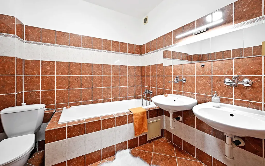 Byt se skládá z prostorné vstupní haly s vestavěnými skříněmi, na kterou navazuje spojovací chodba s velkorysým úložným prostorem. Z ní se vchází do obývacího pokoje s kuchyňským koutem a velkým zabudovaným akváriem, dále pak přes pracovnu na balkon. Z chodby se také dostanete do komory, samostatného WC a rozlehlé koupelny se dvěma umyvadly, vanou a WC. Na opačné straně bytu se nachází ložnice a další pokoj se samostatnými vstupy na zasklenou lodžii a s výhledem do zeleně. K dispozici je také druhá komora na společné chodbě.