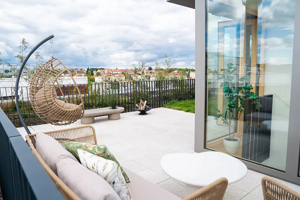 Nabízíme moderní a prostorný byt 4+kk o velikosti 116 m² se soukromou střešní terasou, který spojuje komfort, soukromí a špičkový standard provedení.