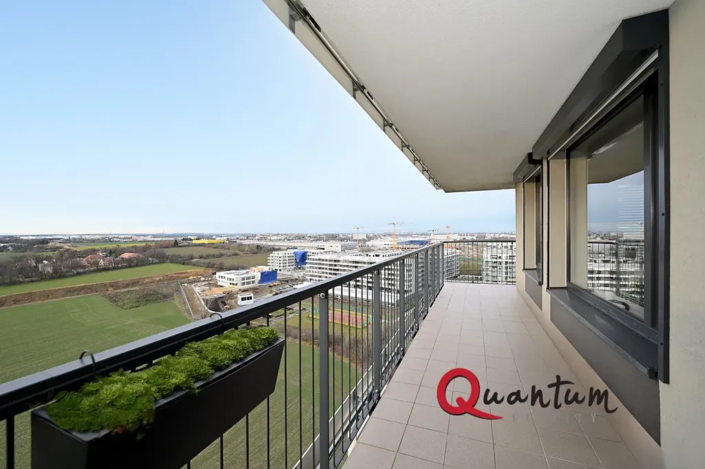 Nabízíme k dlouhodobému pronájmu exkluzivní byt 4+kk o ploše 119,2 m² s prostornou terasou 76,1 m², která obklopuje celý byt a nabízí jedinečný panoramatický výhled na Prahu. Byt se nachází v posledním 14. patře novostavby z r. 2018, v žádané a výborně dostupné lokalitě. Jedná se o nejvyšší budovu developerského projektu Britská čtvrť.
