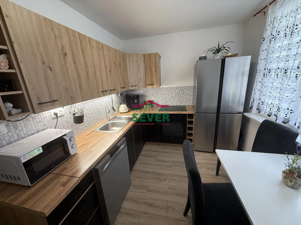 Nemovitosti SEVER vám zprostředkují prodej bytu 3+1, osobní vlastnictví, Postoloprty, okr. Louny, ul. Jiráskovo náměstí. Bytová jednotka po rekonstrukci z roku 2024, o výměře 82 m2, se nachází ve zvýšeném přízemí panelového domu a jeho součástí je lodžie, dvě komory na chodbě a jedna v bytě. V bytě jsou plastová okna, žaluzie den a noc, nové rozvody vody, elektřiny, interiérové dveře, vchodové dveře. V obývacím pokoji je plovoucí podlaha, v ložnici krytina PVC, v dětském pokoji koberec, v kuchyni a na chodbě keramická dlažba. Koupelna s WC jsou samostatné ve zděném jádru. Je zde sprchový kout, skříňka s umyvadlem, přípojka na pračku a sušičku, snížený strop, celé v keramickém obkladu. V kuchyni je rohová linka obložena dlaždičkami, elektrický sporák s indukční deskou, myčka na nádobí a jídelna. Dům po kompletní revitalizaci se nachází v klidné části města bez problémových nájemníků v blízkosti centra města. U domu je parkoviště a park. V případě zájmu zajistíme optimální financování našimi poradci.