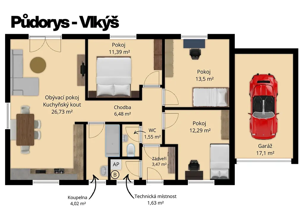 Nechcete se vzdát výhod městského života, ale zároveň žít v klidu, soukromí a pohodlí venkova? Pokud ano, jste tady správně. K prodeji Vám nabízíme moderní rodinný dům – bungalov 4+kk s garáží v klidné lokalitě Dolní Vlkýš, v rámci menšího rezidenčního projektu, který je právě ve výstavbě.