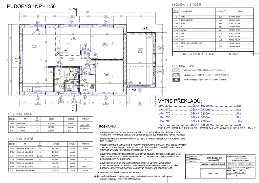 Dům je postaven z Ytong Lambda YQ – prémiových pórobetonových tvárnic s výbornými izolačními vlastnostmi. Díky kvalitnímu zateplení a použitým technologiím nabízí nízké provozní náklady a vysoký energetický standard.