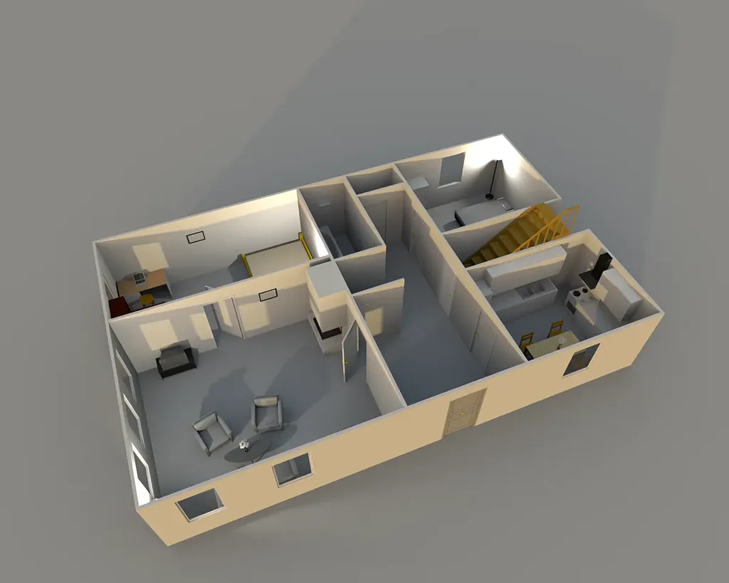 V inzerci je využita vizualizace - možné zařízení několika místností.