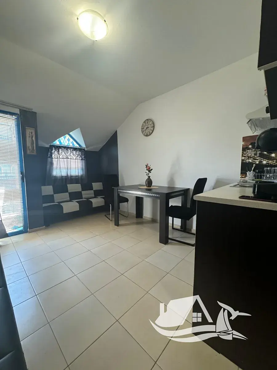 Apartmán o dispozici 1+kk a celkové ploše - 30 m² se nachází v posledním pátém podlaží a díky své poloze působí klidně a vzdušně. Balkon s výhledem na bazén vytváří příjemné místo pro ranní kávu i večerní odpočinek po dni stráveném u moře nebo ve městě. Dispozice je praktická a ideální jak pro vlastní pobyty, tak pro krátkodobý i sezónní pronájem.