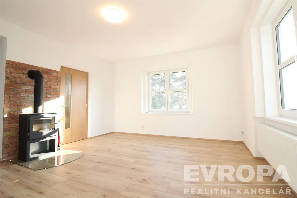 V 1. nadzemním podlaží se nachází prostorný obývací pokoj s krbem (krbové kamna budu instalovány v průběhu 14ti dnů). Dále je zde samostatná kuchyň vybavená moderní a plně zařízenou kuchyňskou linkou, s přímým vstupem na zahradu. Praktické dispoziční řešení doplňuje komora a samostatné WC. Vstup do prostorného sklepa, kde jsou velké prostory k uskladnění.