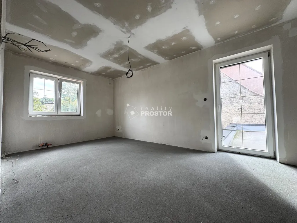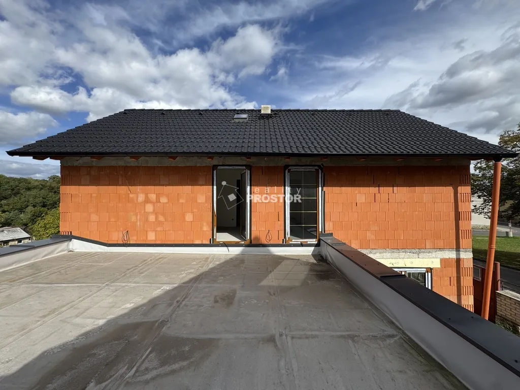 V 1. NP se nachází prostorný obývací pokoj s kuchyňským koutem, komínem pro krbová kamna a výstupem na slunnou a velkou terasu, která umožní příjemnou relaxaci přímo u obývacího pokoje, dále pokoj - plánovaný jako pracovna, technická místnost, koupelna se sprchovým koutem, samostatné WC, dvojgaráž s elektricky ovládanými vraty a důležitým průchodem do domu i zahradu, který je možné dále využít jako úložný prostor.