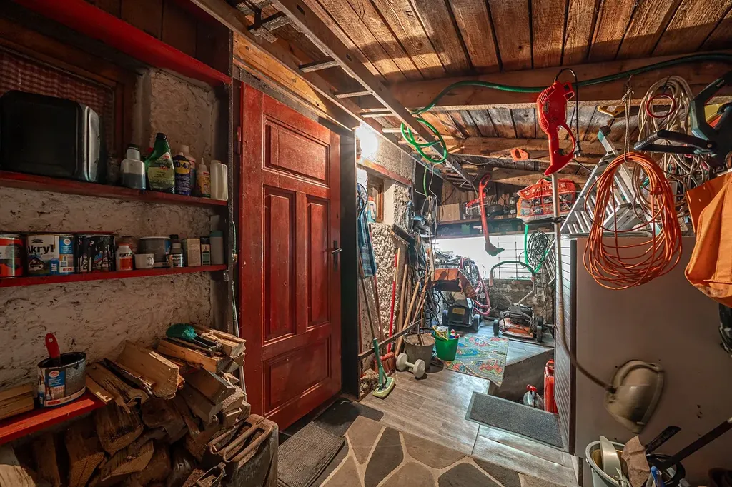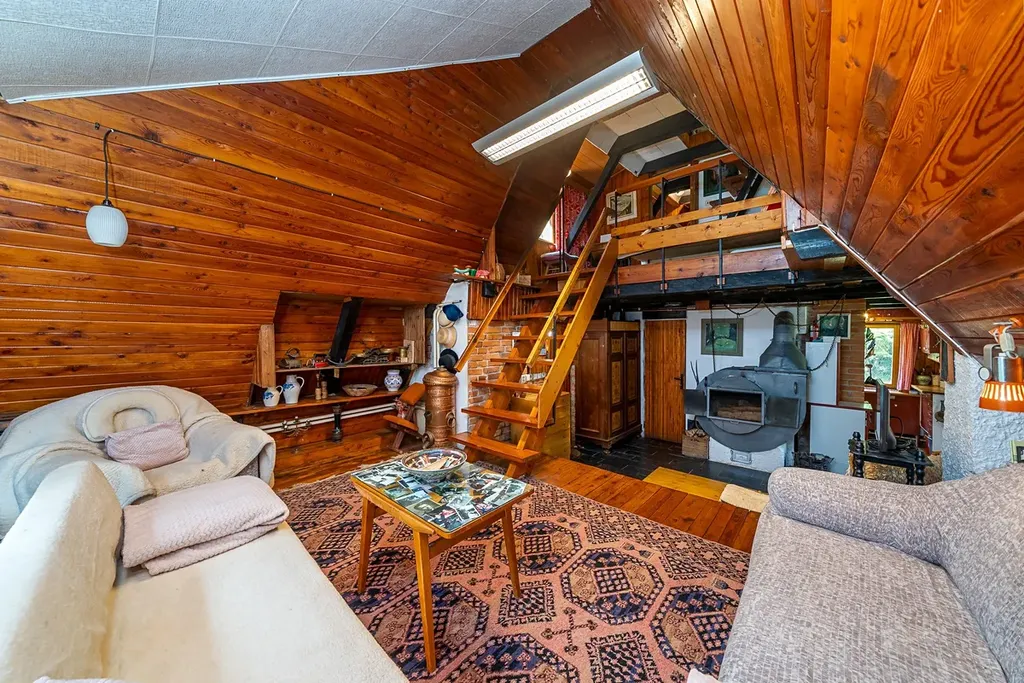 V hlavní obývací místnosti v přízemí je krb, v kuchyni stylová kamna na vaření a v technické místnosti kotel na tuhá paliva s elektrokotlem. Tento systém zajišťuje topení do radiátorů a ohřev vody.