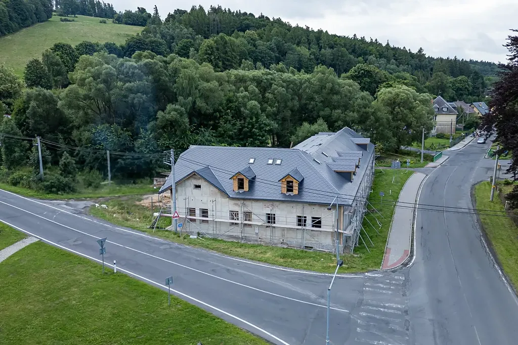 Apartmánový dům vznikne rozsáhlou rekonstrukcí původního objektu a bude přestavěn na moderní apartmánové bydlení ve venkovském stylu s jemnými dekorativními prvky.