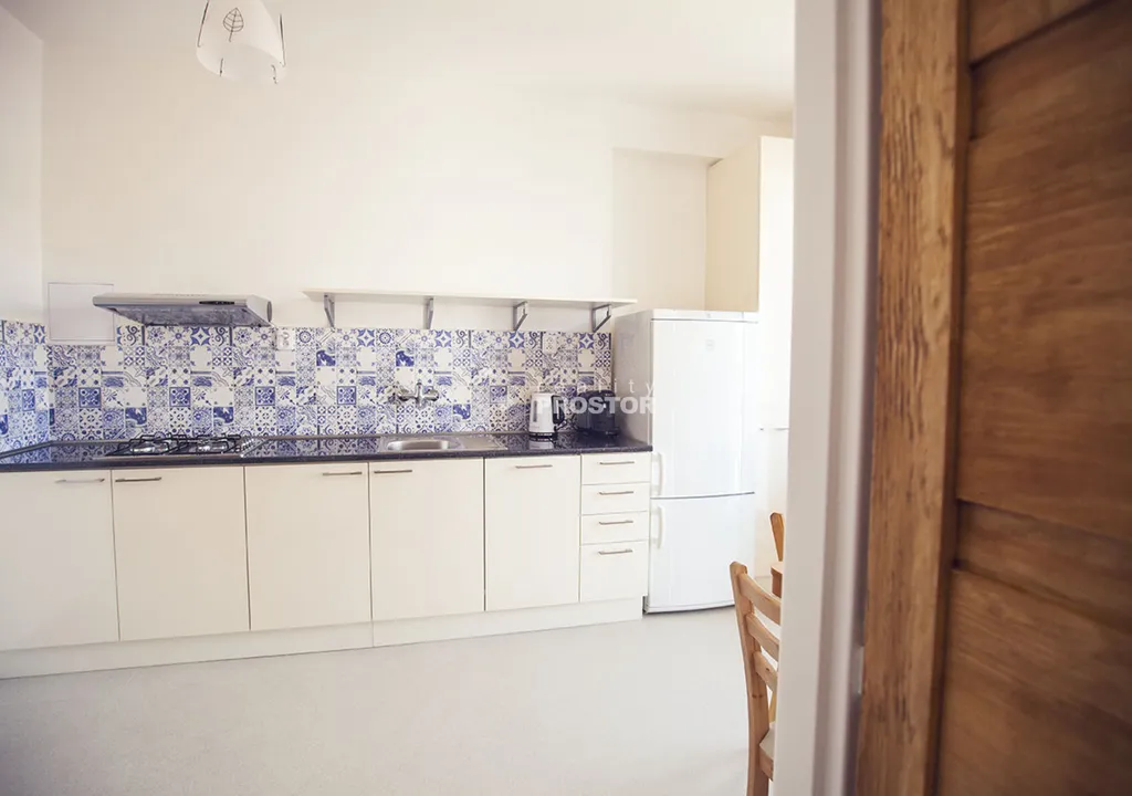 Moderní kuchyň je plně vybavena kuchyňskou linkou s lednicí, plynovou varnou deskou, troubou, digestoří a myčkou. Z kuchyně je přímý vstup na prostorný balkon orientovaný do klidné ulice, ideální pro ranní kávu či večerní relaxaci.