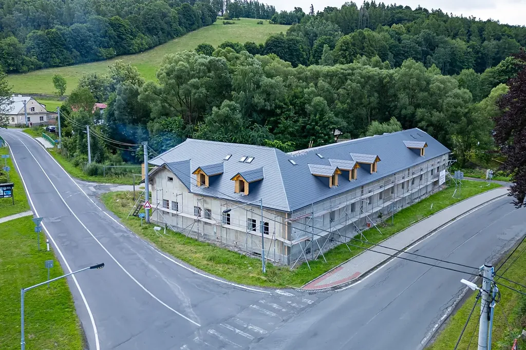 Apartmánový dům vznikne rozsáhlou rekonstrukcí původního objektu a bude přestavěn na moderní apartmánové bydlení ve venkovském stylu s jemnými dekorativními prvky.