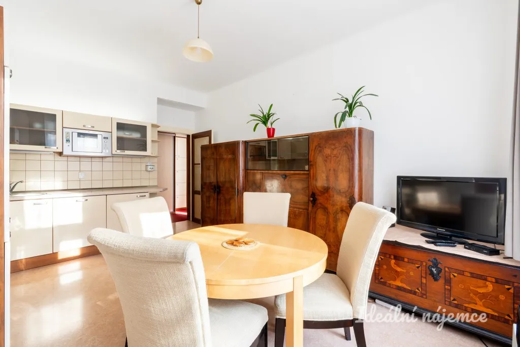 Kuchyně je moderně pojata a disponuje veškerými potřebnými spotřebiči včetně myčky, lednice s mrazákem, elektrické a mikrovlnné trouby či digestoře. Najdete zde také příjemný jídelní kout se stolem a židlemi. Samostatný pokoj slouží jako prostorná ložnice s manželskou postelí a dostatkem úložných prostor pro vaše věci. Koupelna nabízí sprchový kout, umyvadlo a toaletu. Velkým benefitem je také praktický sklep náležející k bytu, který oceníte pro uskladnění sezónního vybavení.