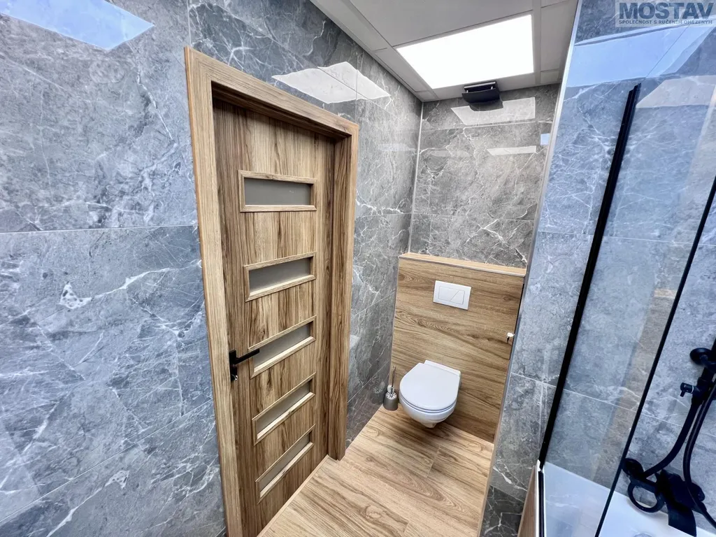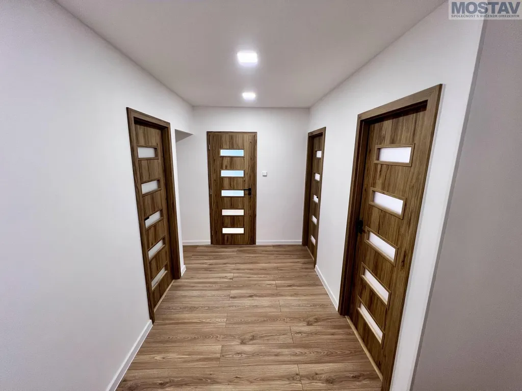 Byt prošel kompletní a kvalitní rekonstrukcí nové podlahy, štuky a výmalba, zděné bytové jádro, moderní koupelna se závěsným WC, snížené stropy v koupelně, předsíni, kuchyni i obývacím pokoji. Součástí je nová kuchyňská linka včetně vestavěných spotřebičů a myčky. Dále nové interiérové dveře s obložkami, kompletně nové rozvody elektřiny a odpadů, nové vypínače a zásuvky, žaluzie den, noc a další.